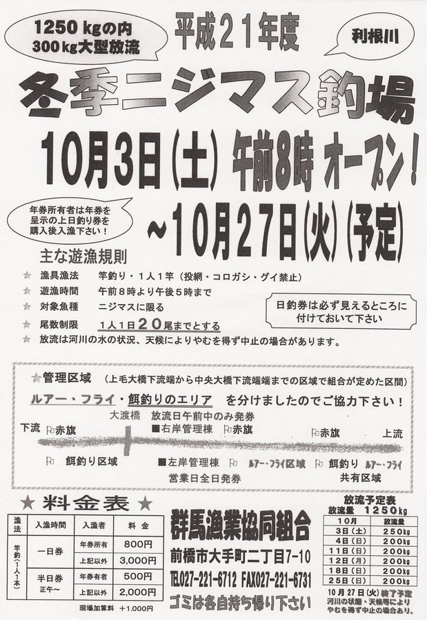 ちなみに群馬漁業協同組合の入漁料は